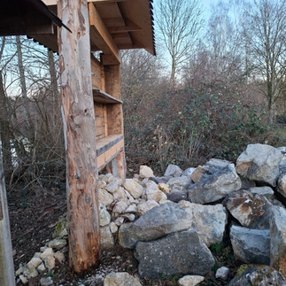 Doch damit ist das Projekt noch nicht abgeschlossen: In den nächsten Schritten werden die Hölzer eingebracht und die Steinmauer bepflanzt, um den Wildbienen und anderen Insekten noch bessere Lebensbedingungen zu bieten.